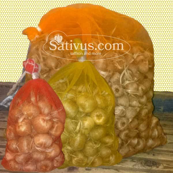 The bulbs of this smallest size will not yet flower in the first year of planting, but because of their favorable pricing they are very suitable for setting up a perennial cultivation of saffron. During the growth cycle of 1 year, these bulbs will develop and multiply under normal conditions so that you can expect a minimum of 3 flowers per bulb in the following year.